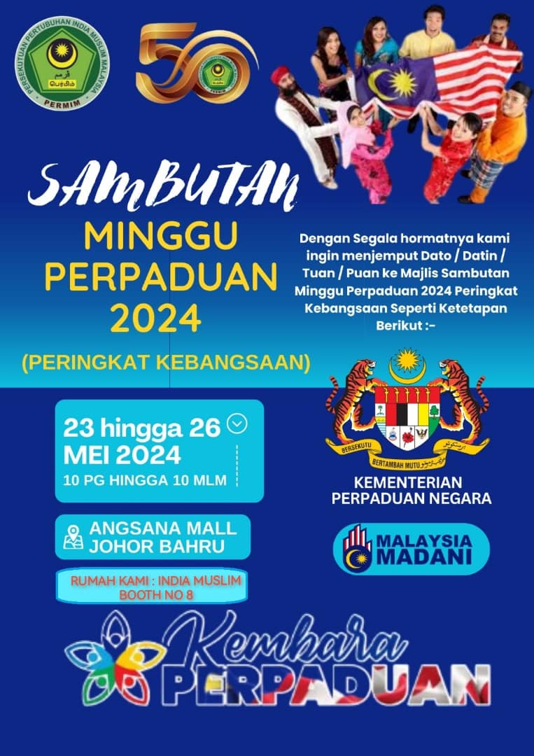Angsana Mall Johor Bahru Lot 2-09, Level 2, Angsana Johor Bahru Mall, Skudai Hwy, Pusat Bandar Tampoi, Johor Bahru, MalaysiaAssalamualaikum Wr Wb Dengan Segala hormatnya kami ingin menjemput Dato / Datin / Tuan / Puan ke Majlis Sambutan Minggu Perpaduan 2024 Peringkat Kebangsaan Seperti Ketetapan Berikut :- Tarikh : 23 Hingga 26 Mei 2024 Tempat : Angsana Mall Johor Bahru Masa : 10 pagi Hingga 10 Malam RUMAH KAMI : INDIA MUSLIM (BOOTH NO … Continue reading Sambutan Minggu Perpaduan 2024